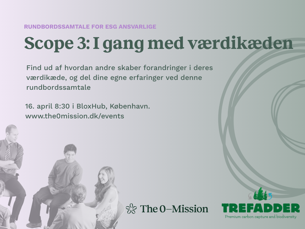 Eventet er organiseret i et samarbejde mellem Trefadder og The 0-Mission som samarbejder med ambitiøse ESG-ansvarlige, der reducerer i scope 2 og 3. Vi ønsker sammen at skabe et rum for hvor inspiration deles mellem ESG-ansvarlige.